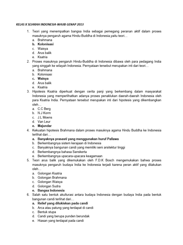 Contoh Soal Sejarah Indonesia Kelas 10 Bab 1: