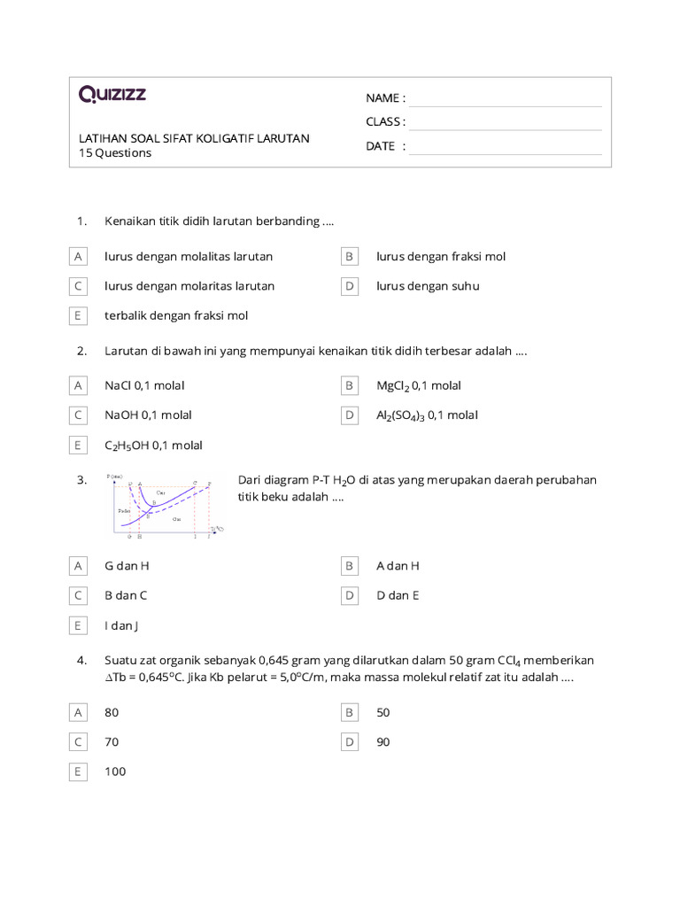Dalam artikel ini, kita akan fokus pada contoh soal latihan 1.4 yang sering muncul dalam materi sifat koligatif larutan kelas XII. Kita akan membahas langkah demi langkah penyelesaian soal, memberikan penjelasan mendalam mengenai konsep yang terlibat, serta memberikan contoh aplikasi praktis dari sifat koligatif larutan dalam kehidupan sehari-hari.