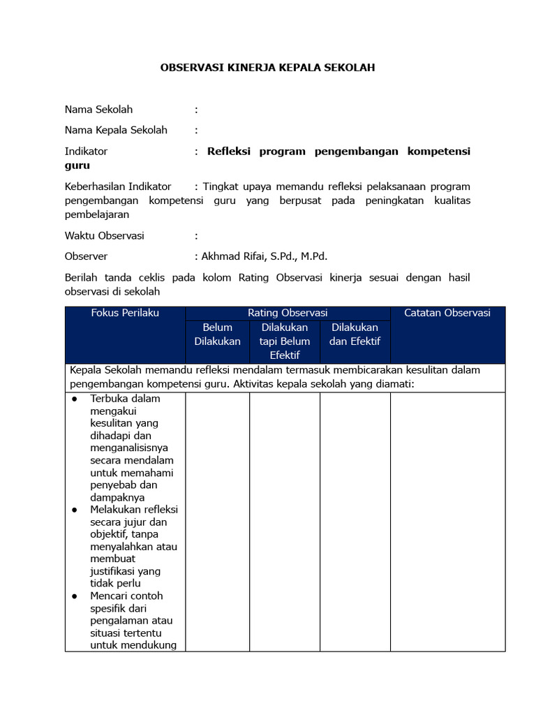 - Fokus pada Pertumbuhan Profesional, Bukan Penilaian: Observasi digital harus difokuskan pada pertumbuhan profesional guru, bukan pada penilaian. Umpan balik harus konstruktif dan bertujuan untuk membantu guru meningkatkan keterampilan dan pengetahuan mereka.